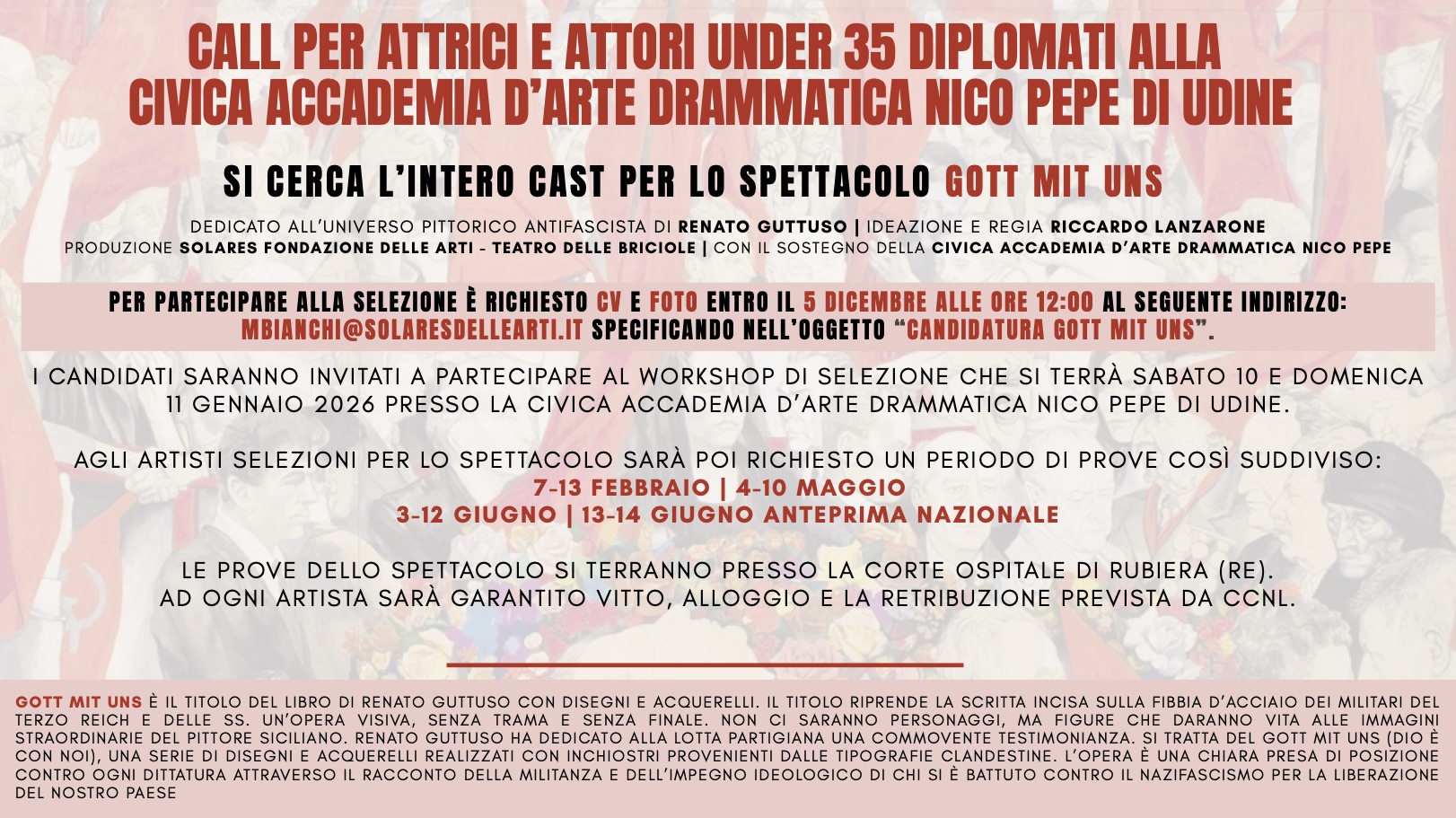 Il 2025 celebra il cinquantesimo anniversario della scomparsa di Pier Paolo Pasolini, e la Civica Accademia d’Arte Drammatica Nico Pepe rende omaggio al grande intellettuale con lo spettacolo
