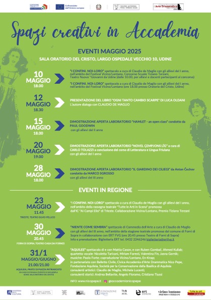 La nostra programmazione offre una varietà di spettacoli teatrali e saggi che spaziano dai grandi classici alle proposte contemporanee con drammaturgia originale, passando per performance innovative e momenti di incontro. Il viaggio comincia, ecco il calendario (o scarica la locandina Locandina Maggio_2025_compressed
